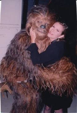 Peter Mayhew got his faxes, and he made it to the MTV Movie Awards, George Lucas was there, and Carrie Fisher was there. I was in the audience, and backstage, and I saw the large trunk arrive from LucasFilm that contained the actual Chewbacca costume. I saw Chewbacca backstage, and was there when this photo was snapped. But I didn’t dare introduce myself. He must have figured out that some jackass from MTV was calling him, but he never complained to any higher-ups, and no one ever found out that I tortured Chewbacca.